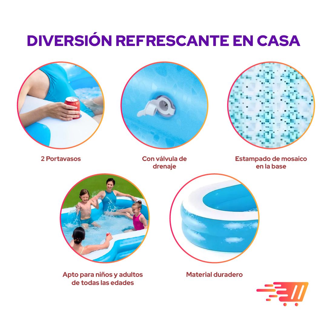 El refugio perfecto para el calor del verano. Si buscas comodidad y amplitud para que los más pequeños chapoteen a gusto, esta piscina de diseño ergonómico es la elección ideal. Su forma única permite un mejor aprovechamiento del espacio.